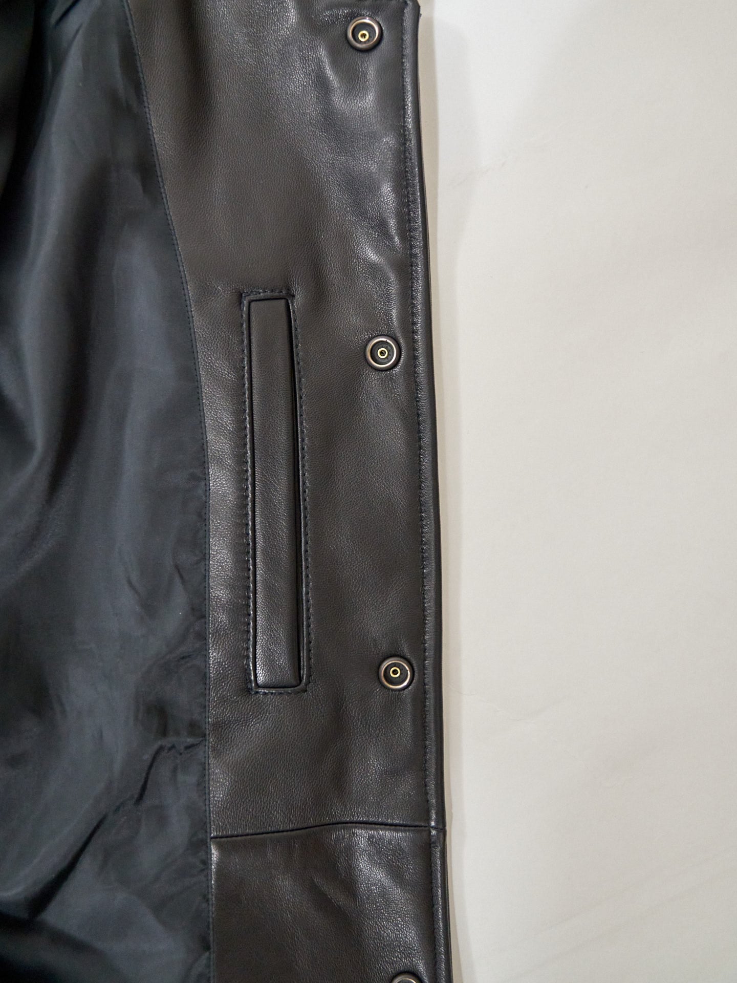 やや肉厚なシープレザーを使用し、裾を絞ったりするのに柔らかい風合いも欲しかったので表面は顔料などを使用せずきめ細かい下地を活かしたナチュラルな仕上げにしました。